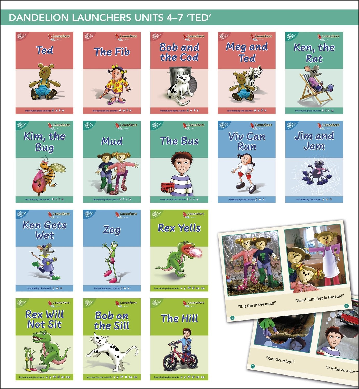 Dandelion Launchers Units 4-7 Ted is aimed at children in Reception to Year 2. Each book introduces only a few letters/sounds at a time, allowing independent reading from the outset.